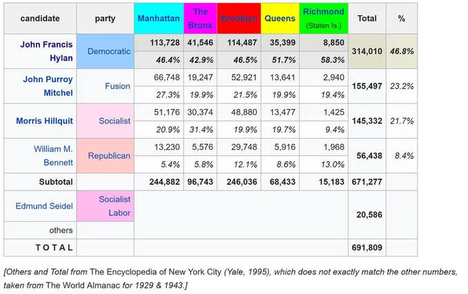 With all the votes cast at the end of election night Hillquit came in a respectable third place, just behind incumbent mayor. With Mitchel in the race, the reform vote split in the winner-take-all U.S. model, paving the way for Tammany to regain power. The winner, Judge “Silent” John Hylan, a loyal machine operative, had refused to take any public stances on the major issues of the day, including American entry into WWI. Nevertheless, Tammany mayors continued to govern New York until the tenure of Fiorello La Guardia in the 1930s.