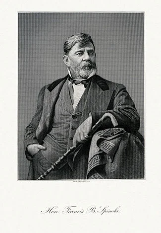 Frank Spinola did not ordinarily demonstrate pride in his Italian roots. For the most part, the constituents in his long political career were Irish or German. He was born in Stony Brook, New York, in 1821 and came to Brooklyn at the age of sixteen to apprentice as a jeweler. His road to political popularity started when he led a Brooklyn firehouse; he was elected an alderman at the age of twenty-two. He remained proud of his years in Engine 4, wearing his shirt collars high in the style of firemen and thus popularizing a look called the Spinola collar. Spinola moved up to the State Assembly and then the Senate. Although he had steadfastly opposed the abolitionist movement, he threw himself into wholehearted support for the Union effort in the Civil War.