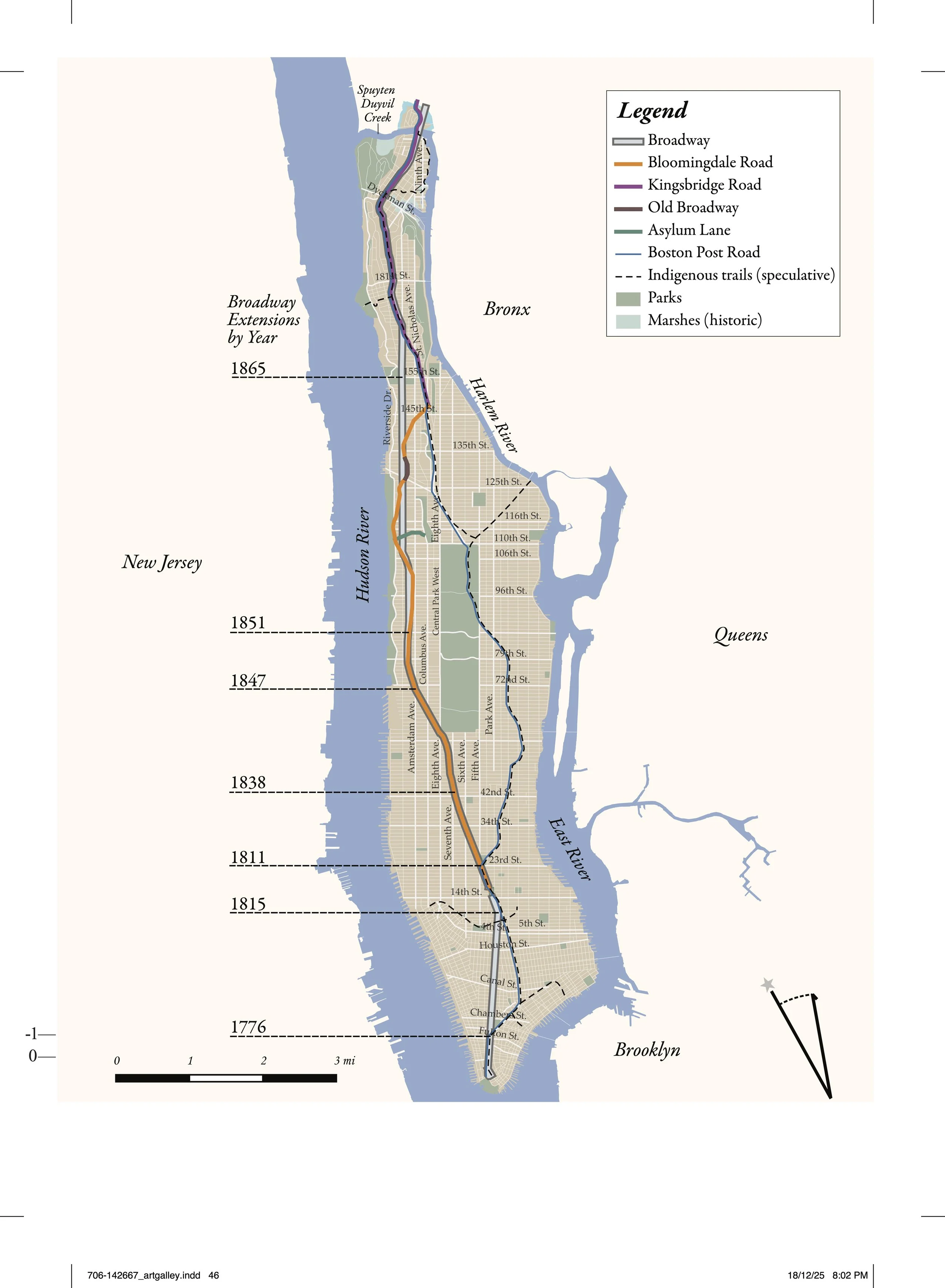 Map of Broadway and its antecedents, prepared by Jay Bowen and Nick Yablon.