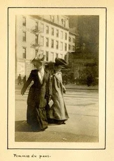 C. G. Hine, “Femmes du pave.” After the Civil War, the area around Union Square emerged as a red-light district. Nearby brownstone houses, vacated by the elite, became brothels, and women allegedly patrolled the neighborhood in shifts, from early afternoon to early morning. They identified themselves with large feathered hats, worked in pairs, and kept walking (perhaps glancing back at the police) to avoid arrest. On this basis, Hine bluntly assumes that these are “femmes du pave” – a faux- French euphemism for sex workers. By the time Hine took his photograph, however, police and reformers were seeking to eliminate such uses of the street. Recognizing the impossibility of eradicating prostitution altogether, they proposed policies of spatial containment. They tolerated brothels “in streets formerly residential and deserted by the better class of occupants” and along “the great thorough-fares,” provided their activities remained indoors. Hine’s stance appears more sympathetic, as if he sensed that streetwalkers were an endangered species, like so many other features of ancien-siècle Broadway.