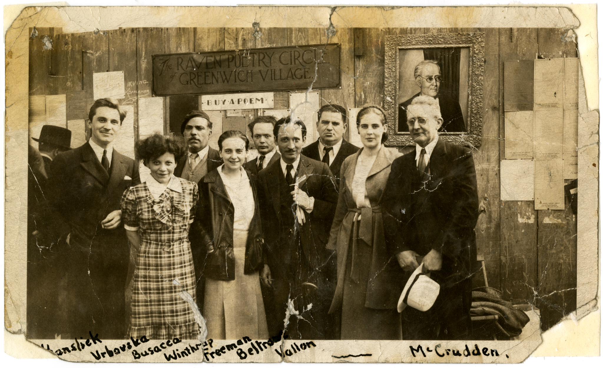 Raven Poetry Circle members with Anca Vebrovska in front row, left (in plaid dress) [collection of the New-York Historical Society, PR 108, Raven Poetry Collection].