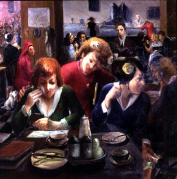 Painting of Life Cafeteria, Greenwich Village, 1936, by Vincent La Gambina [Museum of the City of New York. Gift of Vincent La Gambina, 1988. 88.10.1].