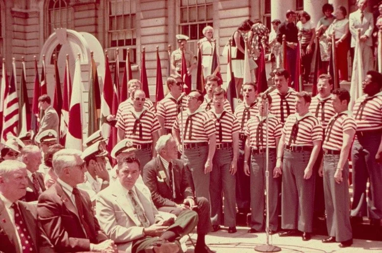 “Sailors singing in a choir during Operation Sail ‘76 celebrations,” Summer 1976., South Street Seaport Museum Archives, Slide Collection.