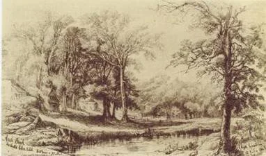 Elizz Greatorex drew this sketch of Arch Brook (originally the Saw Kill) on the eastern side of Manhattan in 1869, approximately where E. 75th St. meets FDR Drive today. (source: Mannahatta, 2009).